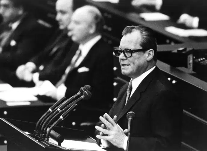 Eine Woche nach seiner Wahl zum Bundeskanzler steckt Willy Brandt den Kurs der neuen Regierung ab, die erstmals von SPD und FDP gebildet wird. Er kündigt Reformen im Innern und eine neue Ost- und Deutschlandpolitik an. Brandts Kernbotschaften lauten: „Wir wollen mehr Demokratie wagen“ und „Wir wollen ein Volk der guten Nachbarn sein und werden – im Inneren und nach außen.“